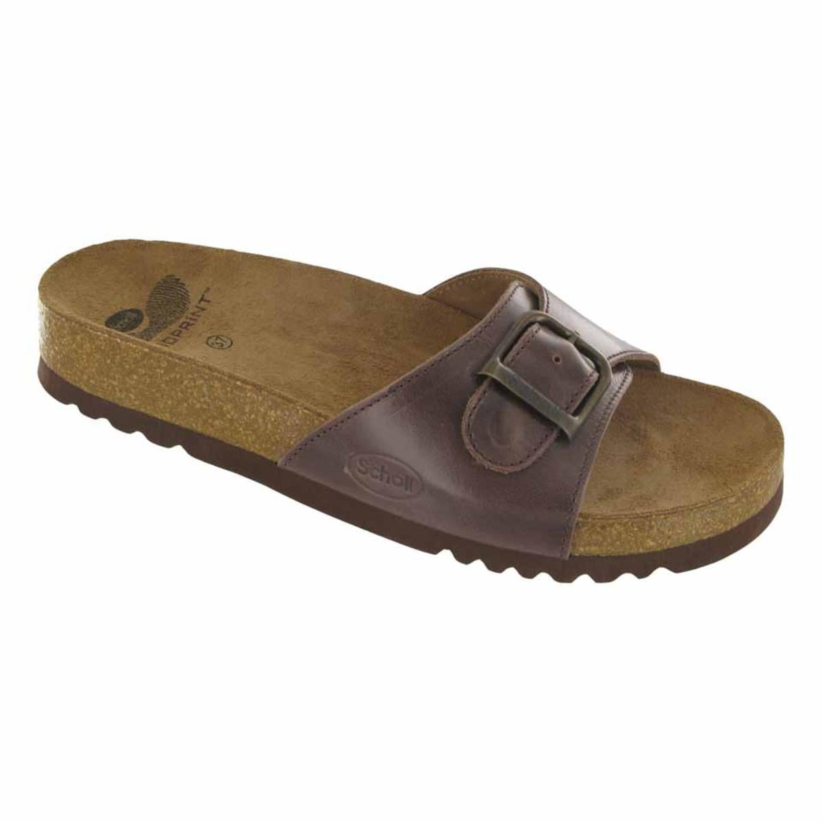 Akumal è una ciabatta con tecnologia Scholl Bioprint dotata del caratteristico plantare in sughero naturale e gomma, ergonomicamente disegnato per mantenere il piede nella giusta posizione. Un modello pratico e casual, la tomaia è caratterizzata da una fascia in pelle che abbraccia in modo delicato il piede. La fibbia in metallo permette una perfetta adattabilità al piede.