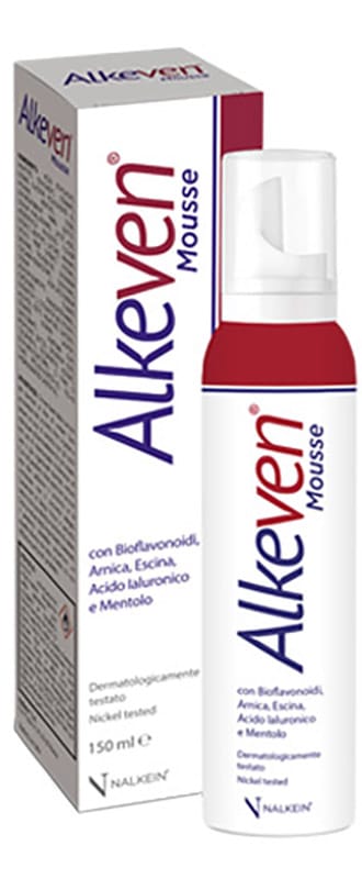 ALKEVEN® Mousse è una schiuma per uso topico indicata per gli inestetismi legati a gambe stanche e pesanti. Grazie alla sua composizione, ALKEVEN® Mousse svolge un’azione rinfrescante e lenitiva sulle gambe affaticate. ALKEVEN® Mousse idrata la pelle e ne uniforma il colore, risultando utile anche nei casi di discromie cutanee dovute a disturbi del microcircolo. La sua formulazione in spray riduce il rischio di contaminazioni e di alterazioni del prodotto.