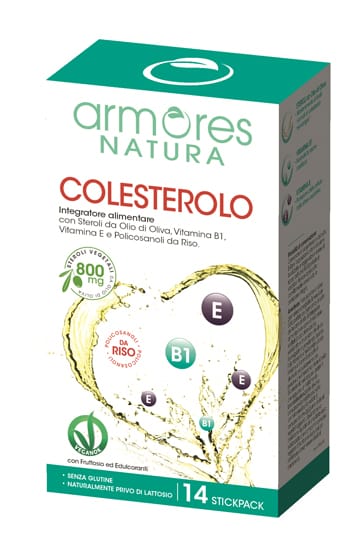 Armores Natura Colesterolo è un integratore alimentare a base di steroli vegetali da olio di oliva, policosanoli da riso, vitamina B1 e vitamina E. Gli steroli vegetali sono molecole lipidiche naturalmente presenti in alimenti di origine vegetale. Armores Natura Colesterolo è un integratore alimentare a base di steroli vegetali da olio di oliva, policosanoli da riso, vitamina B1 e vitamina E. Gli steroli vegetali contribuiscono al mantenimento di livelli normali di colesterolo nel sangue*, mentre la vitamina B1 contribuisce alla normale funzione cardiaca.