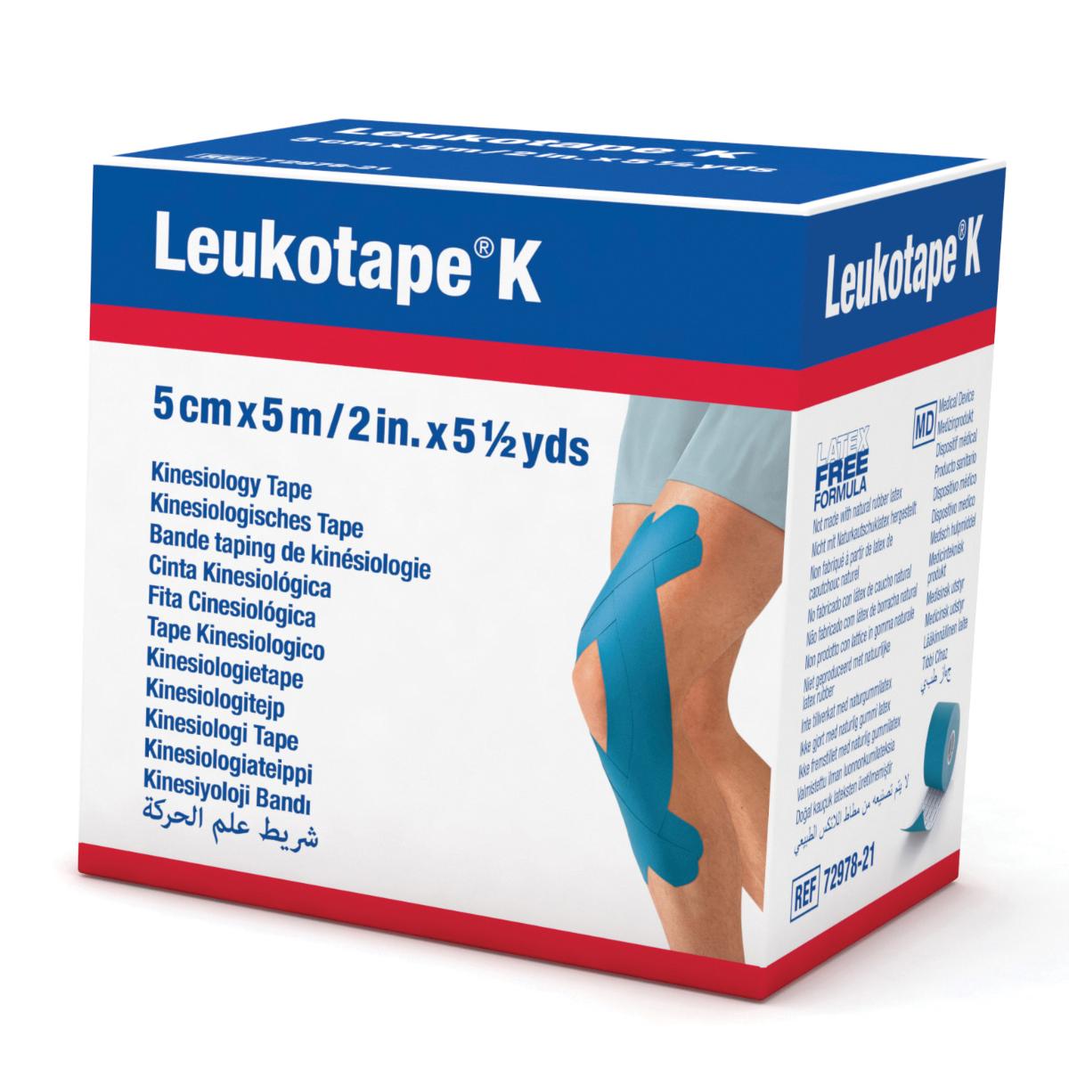 BENDA ADESIVA LEUKOTAPE K PER TAPING FISIOTERAPICO LARGHEZZA 5 CM LUNGHEZZA 5 M COLORE BLU IN ROTOLO