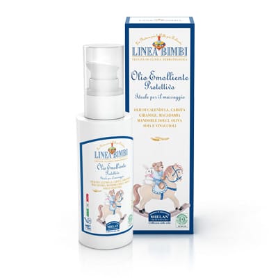L’Olio Emolliente Protettivo è anche indicato per pulire il cuoio capelluto e rimuovere le crosticine (crosta lattea) che possono formarsi sul capo nei primi mesi di vita.