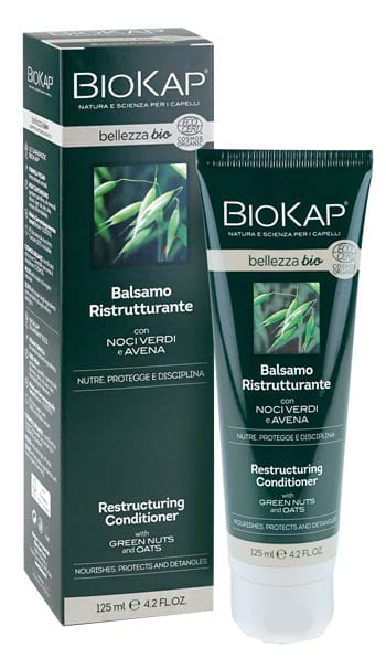 Il Balsamo Ristrutturante Biokap Bellezza bio idrata, districa e nutre i capelli senza appesantirli. La sua formula contiene estratto di avena che contribuisce a ristrutturarli, contrastando la formazione delle doppie punte. Grazie al complesso ricavato da noci verdi, protegge i capelli dai raggi UV e preserva la lucentezza del colore. Lascia i capelli morbidi e docili al pettine.