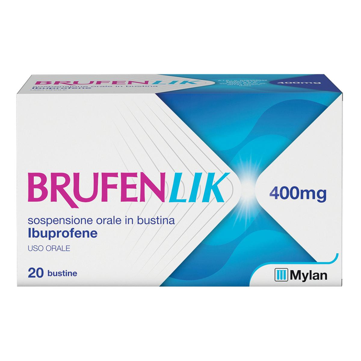 Brufenlik 200 mg non è indicato per i bambini di età inferiore a 6 anni (<20 kg). Per questa popolazione sono disponibili altre formulazioni a base di ibuprofene più adatte. Anziani Non sono necessarie specifiche modifiche del dosaggio a meno che la funzionalità renale o epatica non sia compromessa, nel qual caso il dosaggio deve essere valutato individualmente. È necessario prestare attenzione al dosaggio in questo gruppo. Compromissione renale Nei pazienti con compromissione renale da lieve a moderata. non è necessaria una riduzione della dose (per i pazienti con grave insufficienza renale, vedere paragrafo 4.3). Compromissione epatica Nei pazienti con compromissione epatica da lieve a moderata. non è necessaria una riduzione della dose (per i pazienti con grave disfunzione epatica, vedere paragrafo 4.3) Modo di somministrazione Per uso orale. Mescolare bene il contenuto della bustina prima di ingerirlo, premendo più volte la parte superiore e inferiore della bustina con le dita. Il contenuto della bustina non può essere diviso tra le dosi e deve essere utilizzato l’intero contenuto della bustina. Al fine di ottenere una più rapida insorgenza d’azione, la dose può essere assunta a stomaco vuoto. Si raccomanda ai pazienti con problemi di sensibilità gastrica di assumere ibuprofene con del cibo.