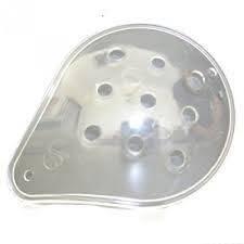 Conchiglia per occhi e è utilizzabile, dopo un intervento oculistico e va posizionata in modo che la bombatura sia rivolta verso l’esterno per lasciare libera la palpebra e permettere tutti i movimenti. Puo’ essere utilizzata indifferentemente su entrambi gli occhi. I nove fori posti al centro della protezione hanno un diametro di 5 mm. per non consentire l’introduzione di corpi. I due forellini del diametro di 2 mm. posti ai lati della conchiglia, sono creati per permettere l’introduzione di un elastico onde evitare l’uso di cerotti per fermare il dispositivo sulla pelle del paziente che potrebbero creare irritazioni.