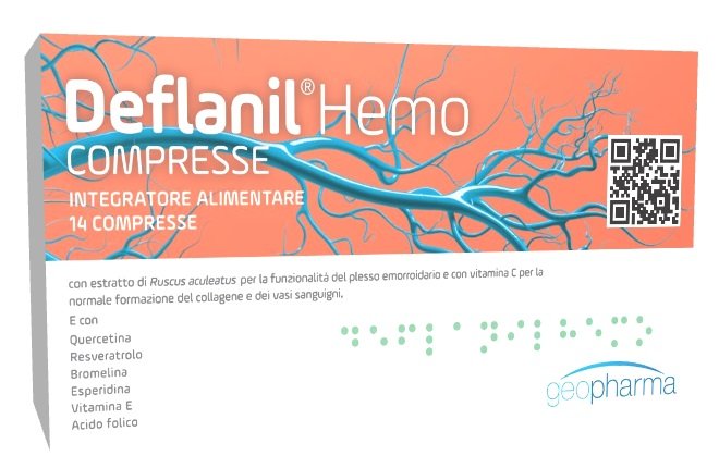 Integratore alimentare a base di Ruscus aculeatus, quercetina, resveratrolo, bromelina, esperidina, vitamina C, vitamina E ed acido folico utile in caso di aumentato fabbisogno dei nutrienti contenuti, in particolare l’estratto di Ruscus aculeatus è utile per la funzionalità del plesso emorroidario e la vitamina C contribuisce alla normale formazione del collagene per la normale formazione dei vasi sanguigni. La vitamina C e la vitamina E contribuiscono alla protezione delle cellule dallo stress ossidativo. L’acido folico contribuisce al normale metabolismo dell’omocisteina.