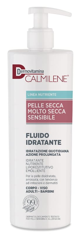 Fluido ad uso quotidiano indicato per idratare, nutrire e ripristinare il film idrolipidico di pelli secche, molto secche e sensibili, tendenti ad arrossamenti, irritazioni e dermatiti.