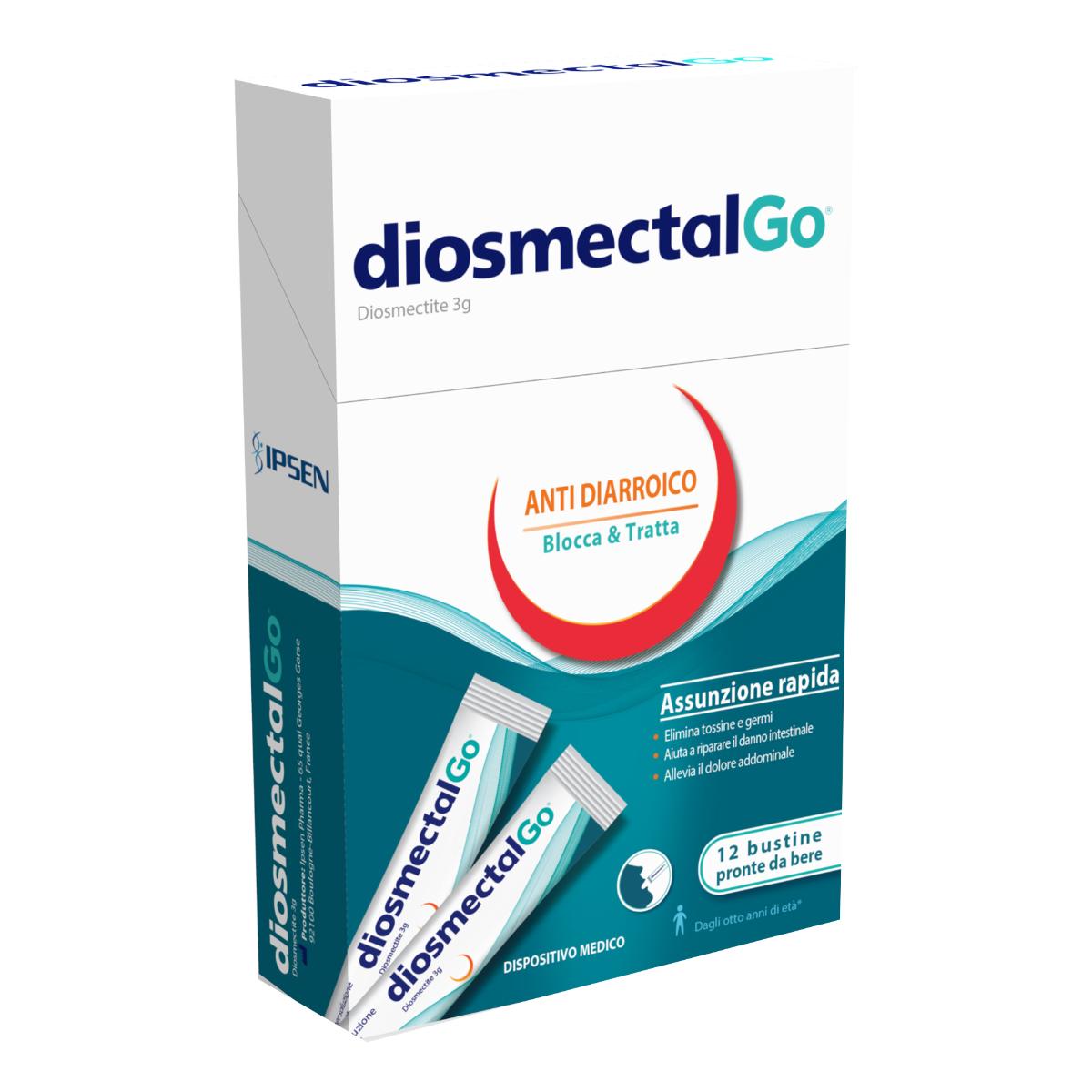 Dispositivo medico, sospensione pronta da bere, in bustine monodose per somministrazione orale. DiosmectalGo è indicato per: