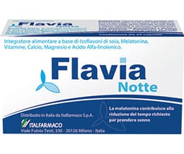 Integratore alimentare che combina estratto di soia (titolato al 40% in isoflavoni di soia), melatonina, vitamine (acido folico, vitamina D, vitamine B6 e B12), minerali (calcio, magnesio) e acido alfa-linolenico. Flavia Notte aiuta a soddisfare le esigenze nutrizionali della donna in menopausa.