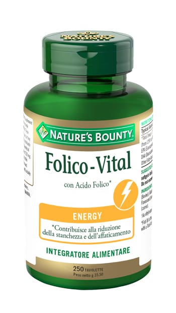 Folico-Vital è un integratore alimentare a base di acido folico. Il folato contribuisce al normale sviluppo dei tessuti materni in gravidanza, interviene nel processo di divisione cellulare e concorre alla normale emopoiesi. Inoltre contribuisce al normale metabolismo dell’omocisteina e alla riduzione della stanchezza e dell’affaticamento.