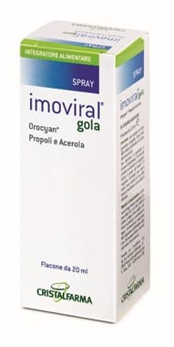 Acqua, fruttosio, estratto idroglicerico di Propoli (glicerolo, succo di mela concentrato, estratto di Propoli 10%, acqua, conservante: benzoato di sodio) titolato allo 0,3%-0,5% in flavonoidi totali (espressi come galangina), estratto secco di Acerola (Malpighia punicifolia L., frutti), Orocyan: estratto secco di Cranberry (Vaccinium macrocarpon Aiton, frutti) titolato al 20% in proantocianidine, aroma, conservante: sorbato di potassio.