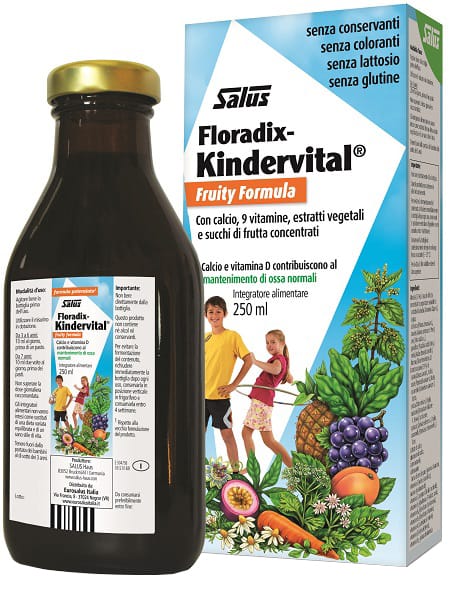 Kindervital fruity è facile da assumere e aiuta a mantenere l’equilibrio di vitamine A, B1, B2, B6, B12, C, D, E e niacina. I nutrienti contenuti sono assorbiti rapidamente dal sistema digestivo perché sono già disciolti.