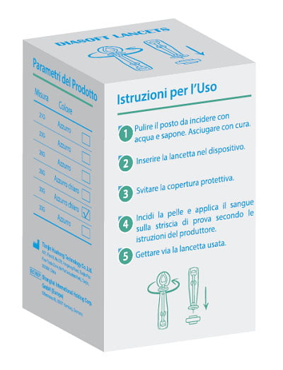 Non condividere mai una lancetta con altri. Non utilizzare la lancetta se è presente il cappuccio protettivo precedentemente rimosso. Non riutilizzare la lancetta. Non conservare la lancetta nel dispositivo pungidito. Gettare la lancetta usata in un contenitore appropriato.