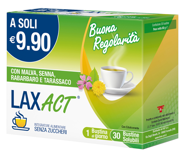 Integratore alimentare con malva, senna, rabarbaro e tarassaco.