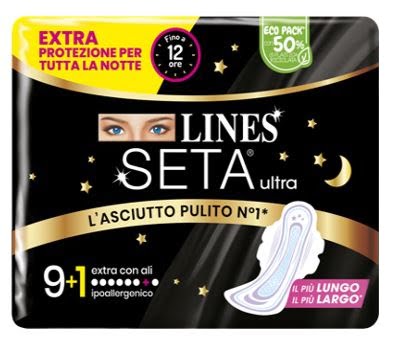 LINES SETA ULTRA ASSORBENTI EXTRA NOTTE CARRY PACK PACCO SINGOLO 9+1 PEZZI