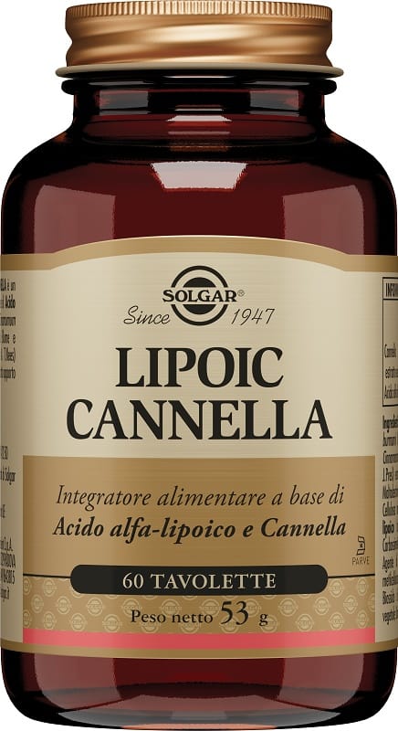 Integratore alimentare a base di acido alfa-lipoico e cannella [Cinnamomum burmanni (Nees & T.Nees) Blume e Cinnamomum cassia (Nees & T.Nees) J.Presl]. Indicato nei casi di ridotto apporto con la dieta.