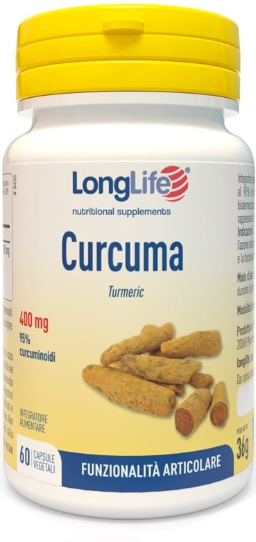 Integratore alimentare a base di estratto di Curcuma longa titolato al 95% in curcuminoidi (curcumina, demetossicurcumina, bisdemetossicurcumina), pigmenti polifenolici di cui la curcumina rappresenta il principale composto bioattivo.