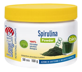 Integratore alimentare di spirulina titolata al 60% in proteine, indicata per la sua azione di sostegno e ricostituente, in polvere. Adatto a vegetariani e vegani.