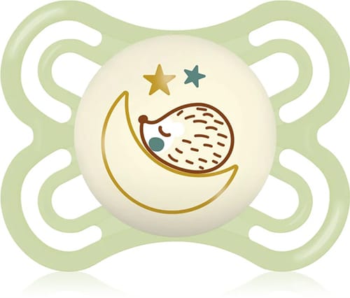 Ciuccio che si illumina al buio, facile da trovare grazie al bottone luminescente. Il ciuccio MAM Perfect Night per favorire uno sviluppo sano del cavo orale ed è facile da trovare al buio.