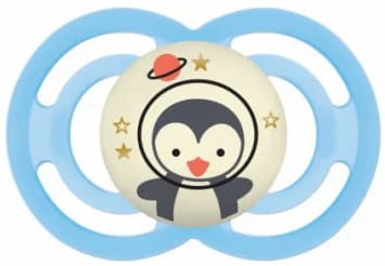 Ciuccio che si illumina al buio – facile da trovare grazie al bottone luminescente. Consente una chiusura più naturale della bocca. Ciuccio ortodontico progettato per ridurre il rischio di malocclusioni dentali.