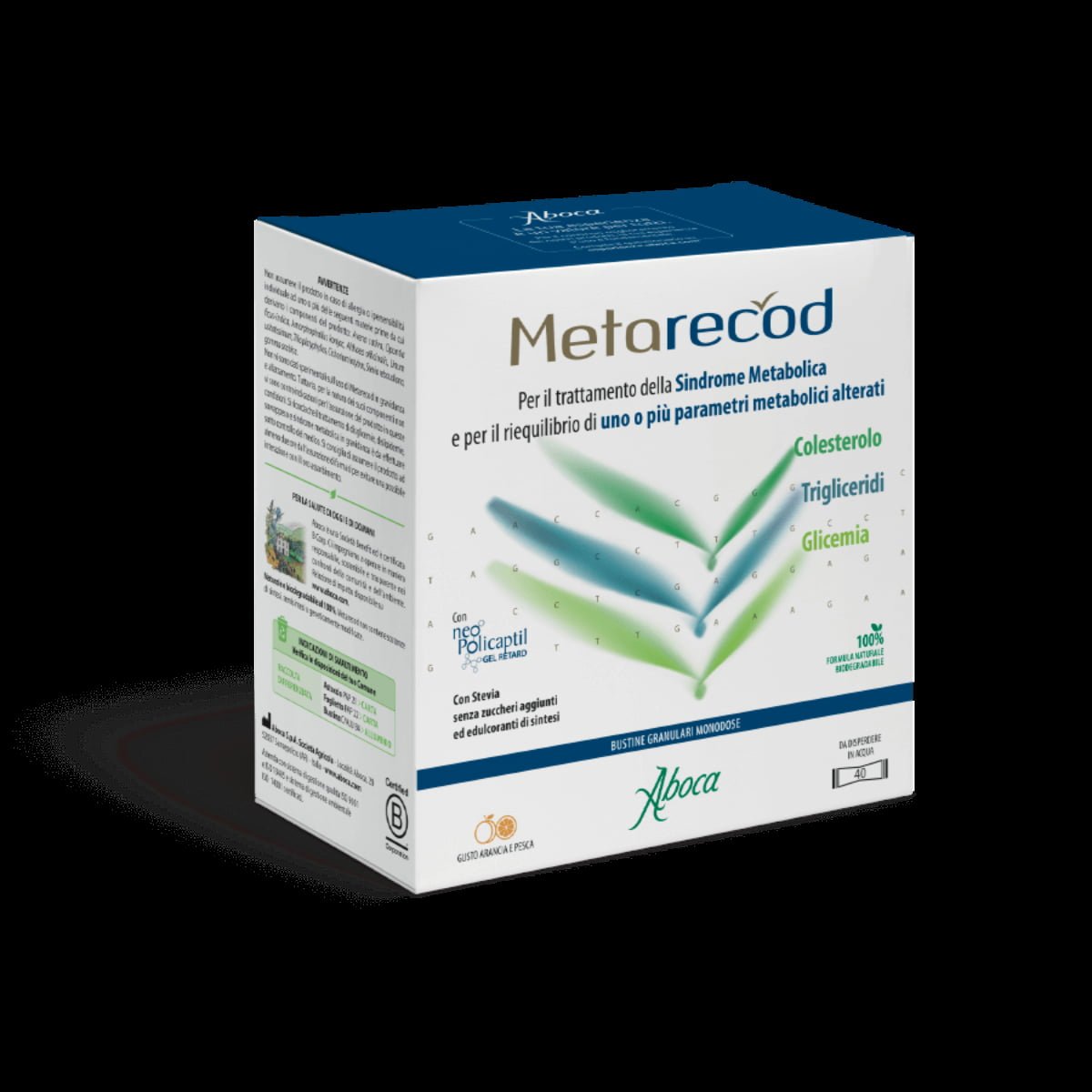 Metarecod è un dispositivo medico utile per il trattamento della sindrome metabolica e il riequilibrio di parametri metabolici alterati quali livelli di colesterolo, trigliceridi, glucosio e valori di circonferenza addominale.