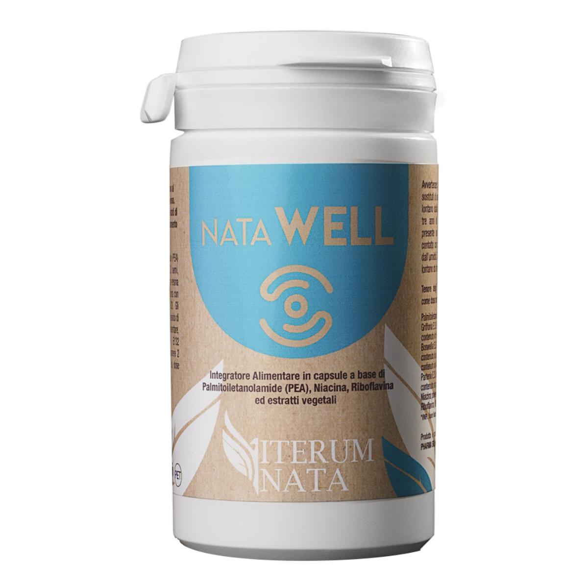 Integratore alimentare in capsule a base di palmitoiletanolamide (PEA), niacina, riboflavina ed estratti vegetali.