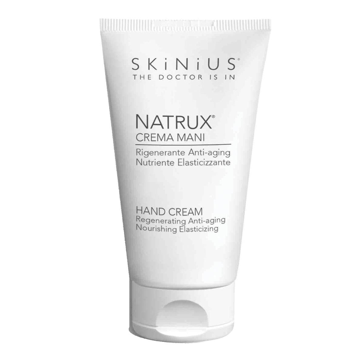 Trattamento protettivo rigenerante anti-aging, idratante, nutriente per il benessere di mani e cuticole. Già dalle prime applicazioni, Natrux Crema Mani attenua la secchezza e la pelle appare più elastica, luminosa, liscia, omogenea e levigata. Adatta anche alla pelle sensibile. Texture morbida e leggera ad assorbimento rapido. Non unge.