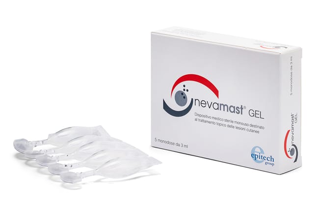 Nevamast Gel è un dispositivo medico sterile ad uso topico destinato al trattamento delle lesioni cutanee nel contesto della loro guarigione per seconda intenzione favorendo il naturale processo di riepitelizzazione. Formulato come gel idrofilico isosmotico e compatibile con gli essudati biologci che, grazie all’effetto sinergico dei suoi componenti, favorisce il naturale processo di riepitelizzazione di lesioni cutanee, anche profonde. La presenza dell’acido trans-traumatico fa sì che si ottimizzi il naturale processo di convergenza dei cheratinociti determinando in tal modo una progressiva normalizzazione della perdita trans epidermica di acqua e un effetto barriera in grado di contenere il rischio di colonizzazione da parte di microrganismi. L’adelmidrol, sostanza lipidica ampiamente utilizzata come coadiuvante nella normalizzazione di processi infiammatori dermoepidermici favorisce il fisiologico aumento endogeno dei livelli locali dell’aliamide palmitoiletanolamide (PEA), necessari al controllo dell’equilibrio neuro-vasale locale e alla conseguente ottimale riparazione tissutale. Pertanto, l’associazione delle due sostanze principali determina, in considerazione del rispettivo meccanismo di azione nettamente differenziato, un effetto sinergico in grado di favorire il naturale processo di riepitelizzazione cutanea. Nevamast Gel è destinato ad essere utilizzato su cute lesa e particolarmente su lesioni torpide come le ulcere varicose degli arti inferiori, le piaghe da decubito, le lesioni cutanee nella pratica ortopedica e traumatologica particolarmente nei soggetti anziani.