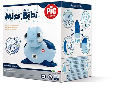 Apparecchio per aerosol terapia a micropistone pratico e silenzioso, studiato appositamente per bambini da 0 a 3 anni.
