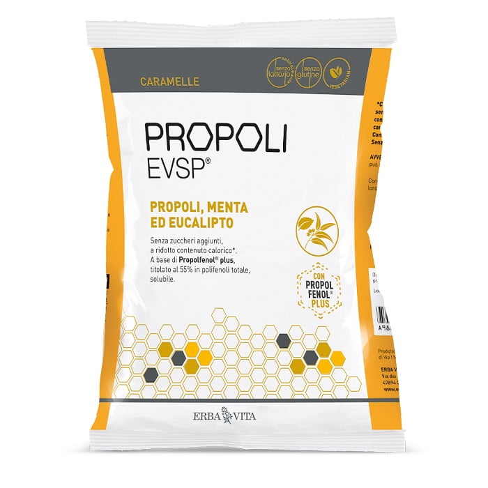 Caramelle dure a base di PROPOLI EVSP ed oli essenziali di Menta ed Eucalipto.
