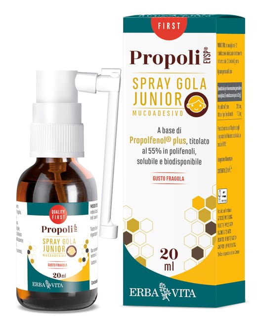 Integratore alimentare. PROPOLI EVSP (Erba Vita Soluble Propolis) è a base di Propolfenol plus, un fitocomplesso integrale e sinergizzato, titolato al 55% in polifenoli totali, completamente solubile in ambiente acquoso e di conseguenza biodisponibile. Senza alcol ed aromatizzato al gusto fragola, è particolarmente indicato per i più piccoli. Il pratico nebulizzatore permette un utilizzo semplice e mirato.