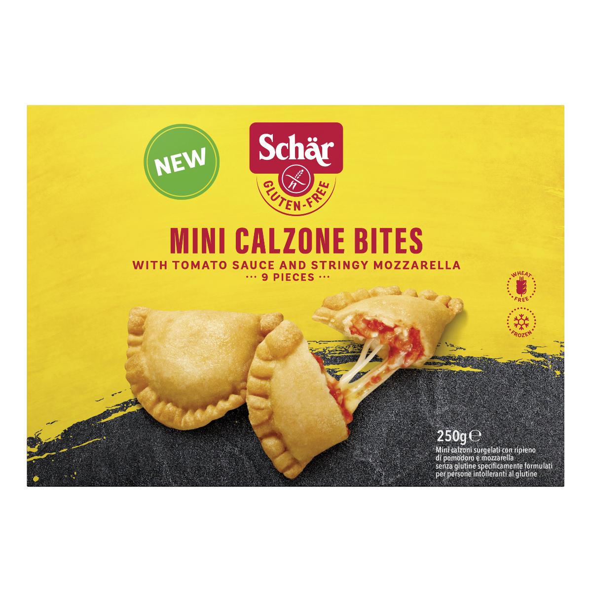 Mini calzoni surgelati con ripieno di pomodoro e mozzarella. Specificamente formulati per persone intolleranti al glutine.