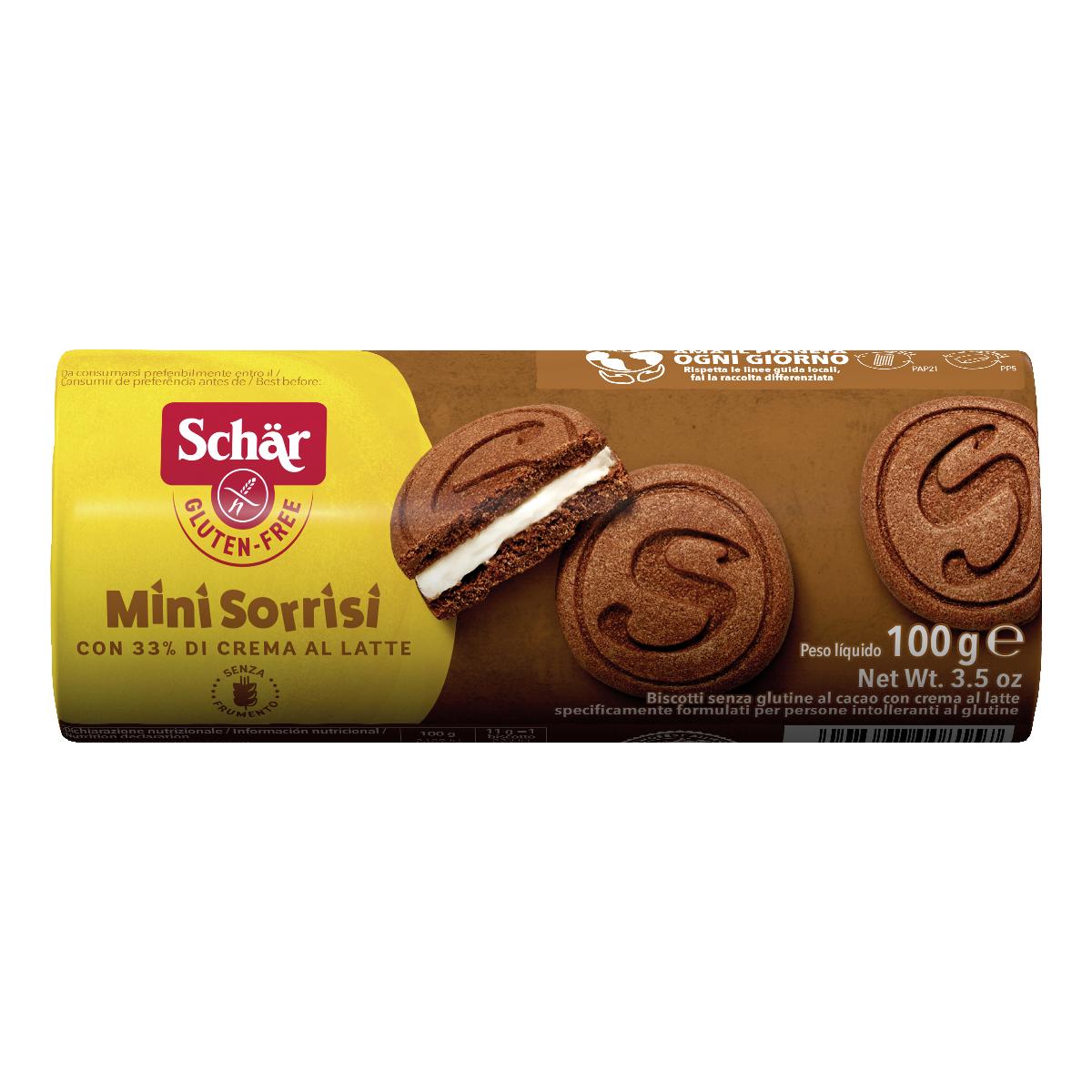 Biscotti dietetici senza glutine al cacao, con crema al latte.