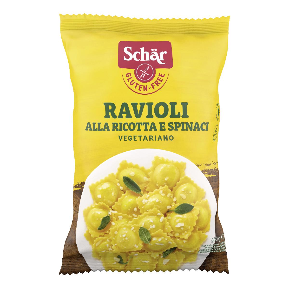 Pasta all’uovo 60% [uova 30%, amido di mais, farina di riso, amido di tapioca modificato, albume (uovo) 2%; emulsionante: mono- e di- gliceridi degli acidi grassi; addensante: gomma di xantano], ricotta vegetariana 30% [siero di latte, latte; correttore di acidità: acido lattico], spinaci 6%, formaggio vegetariano (latte, sale, enzima coagulante microbico), albume (uovo), fibra vegetale, sale.