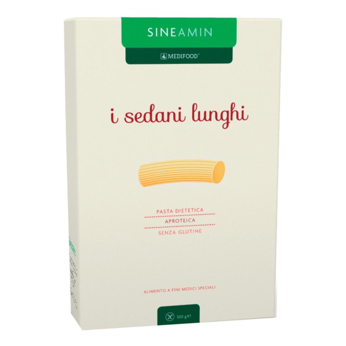 Pasta aproteica e senza glutine. Per il trattamento dietoterapico di soggetti con insufficienza renale cronica e aminoacidopatie metaboliche. La pasta Sineamin è inoltre indicata nelle diete aproteiche, prive di glutine ed a basso contenuto di sodio, potassio e fosforo.